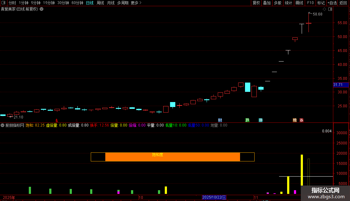 DRAWTEXT(CURRBARSCOUNT=N1+3,中点*1.8,'饱和度'),COLORYELLOW;