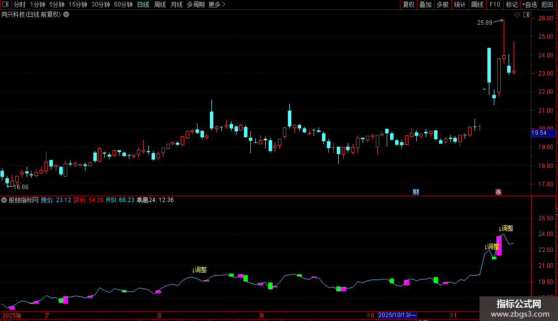 DRAWTEXT(CROSS(RSI,80),H*1.03,'↓调整'),COLORYELLOW;