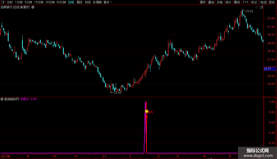 操作策略是在“天师令”信号出现后,观察次日股价表现。若次日股价上涨超过特定幅度或收盘高于前日,则视为成功信号可跟进;若次日表现弱势则放弃。该指标适合捕捉趋势中的强势洗盘后的再次启动机会。