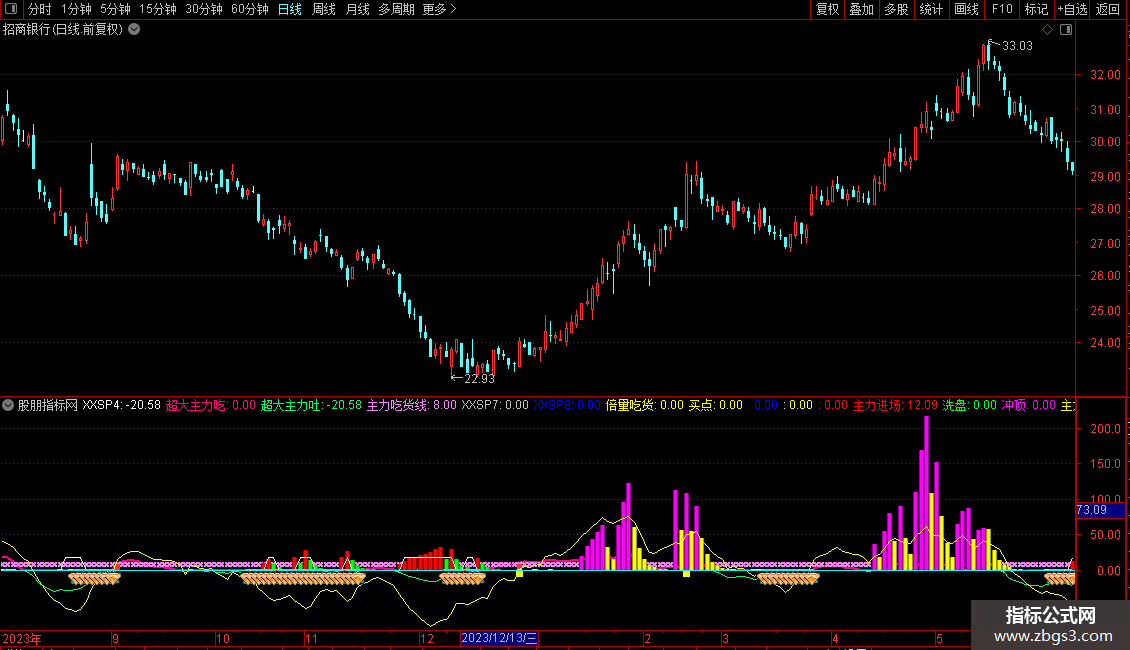 通达信〖主力现身〗通过多维度计算识别主力资金动向副图源码