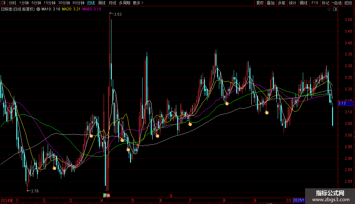 1、均线采用MA3、MA5、MA13、MA34、MA55、MA90。猴子爬杆出现在90M之上为高位区,强势区;再细分在34M之上、34M处、34M之下、90M处四个位置。