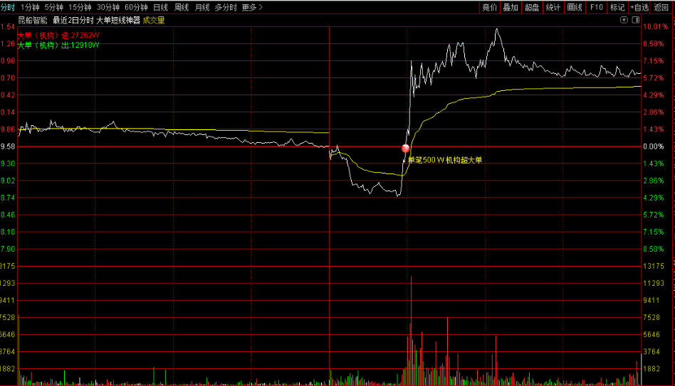 通达信【大单短线神器】分时主图指标统计并显示机构级别的大单进出金额源码