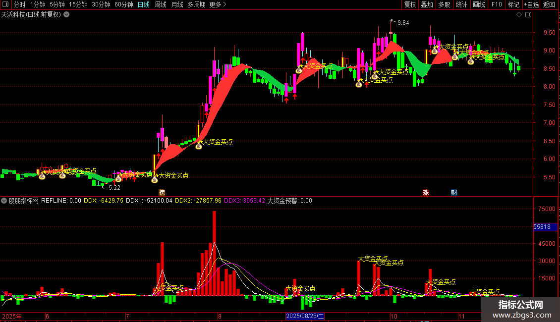 - 📈红绿带状线:5/10日均线组合,直观展示趋势强度