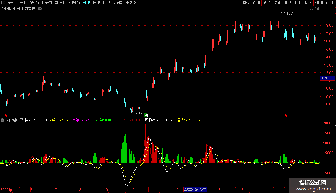 平滑值: EMA(周趋势,5),COLOR00FFFF;