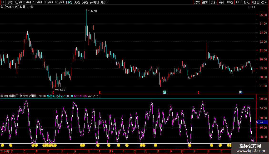 C2:(EMA(((0.667*REF(C1,1))+(0.333*C1)),2)*VAR1),COLORFFFFFF;