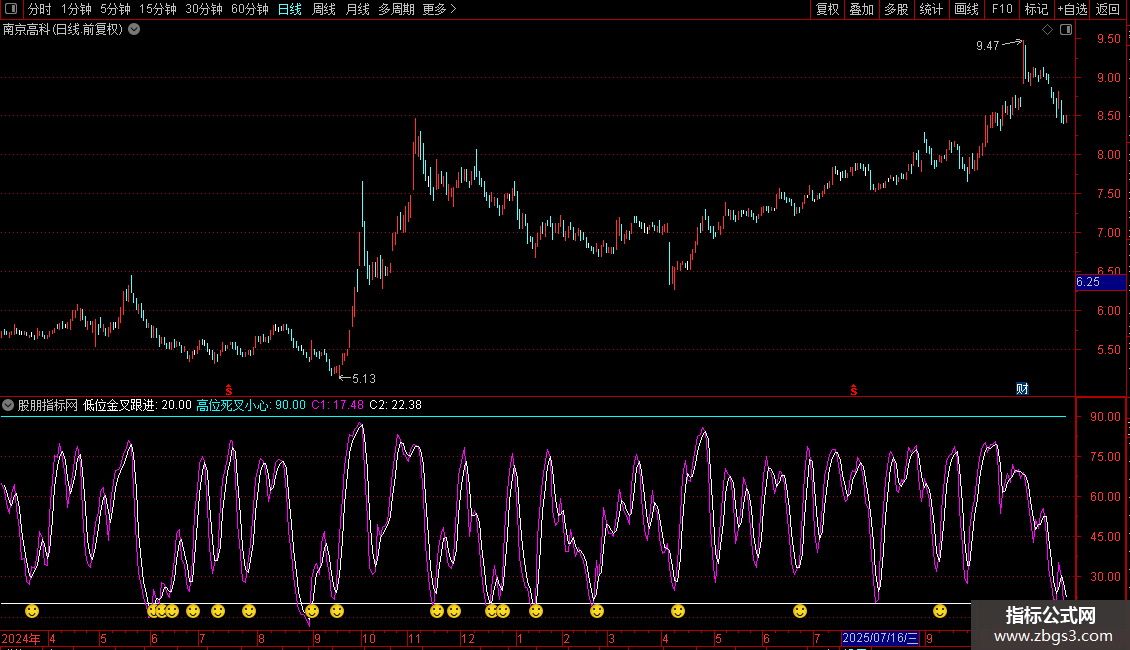 C1:(EMA((((VAR2-VAR4)/(VAR5-VAR4))*100),4)*VAR1),COLORFF00FF;