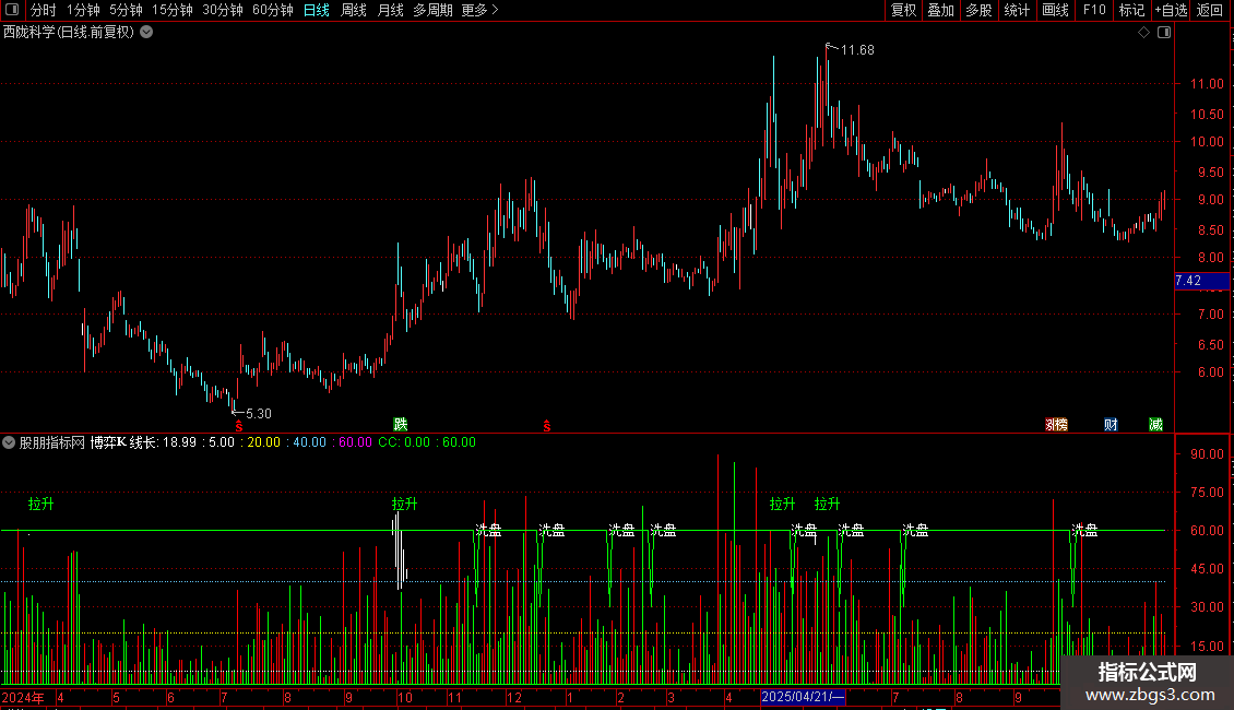 STICKLINE(收<=REF(收,1),0,博弈K线长,0,0),COLOR00FF00;