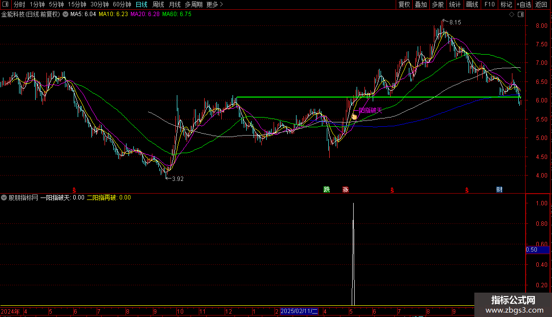 DRAWTEXT(ZBGS39,L*0.98,'一阳指破天'),COLORFF00FF;