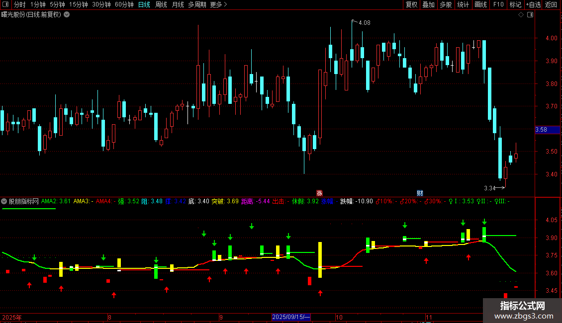 强:IF(AH>REF(C,1)*1.1,REF(C,1)*1.1,AH)NODRAW;