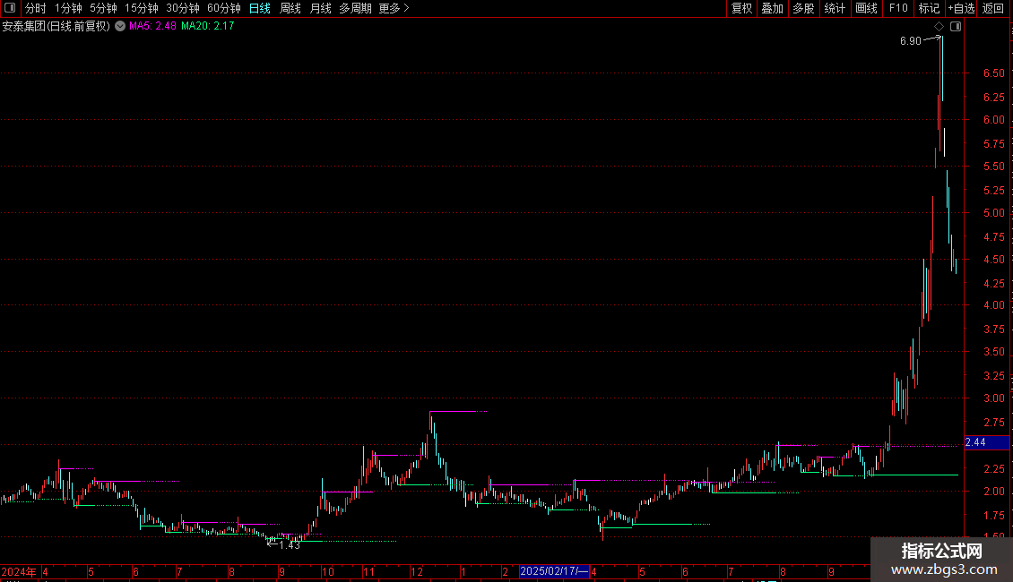 【实战价值】在主图叠加显示波峰波谷双轨线,帮助交易者快速识别:1.上升趋势中的回调支撑位(波谷)2.下降趋势中的反弹压力位(波峰)3.箱体震荡的边界锚点。特别适合短线波段操作,当价格突破最近波峰/波谷时,可辅助判断趋势延续或反转信号。