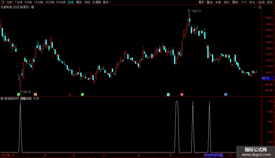 输出调整刹车:收盘价>=VAR1日前的如果收盘价>=开盘价,返回开盘价+开盘价-收盘价的绝对值/2,否则返回收盘价+开盘价-收盘价的绝对值/2 AND VAR1<=2 AND 收阳线