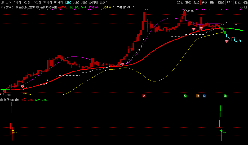 本指标包括1个主图、1个副图和1个选股公式。这个“起伏波动带”指标是通达信软件里一个很实用的主图分析工具。它能帮你直观判断股价的趋势方向和波动区间。