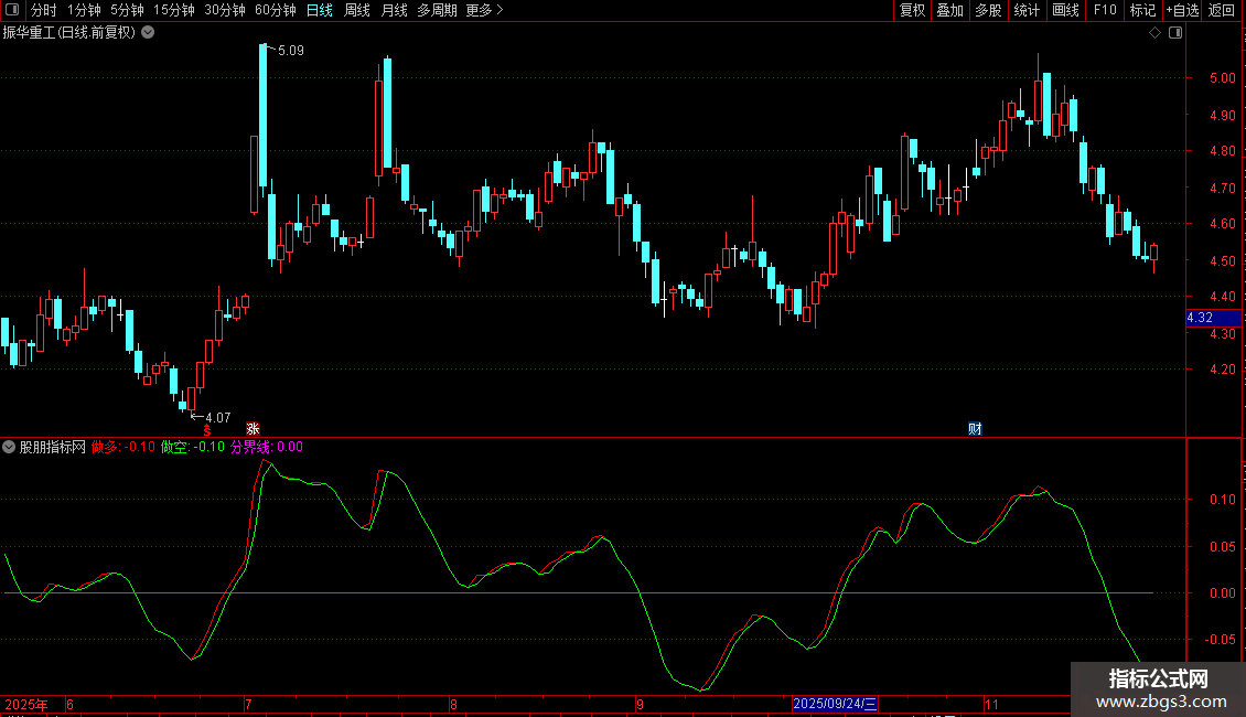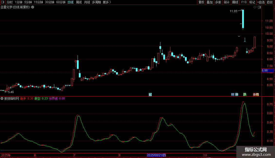 做空:IF(B1-A1,B1,A1),LINETHICK1,COLORGREEN;