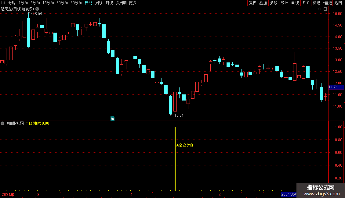 操作策略:当系统出现"金底封喉"黄色信号柱时,表明股票可能结束长期下跌,开始强势反弹,是较为明确的买入时机。