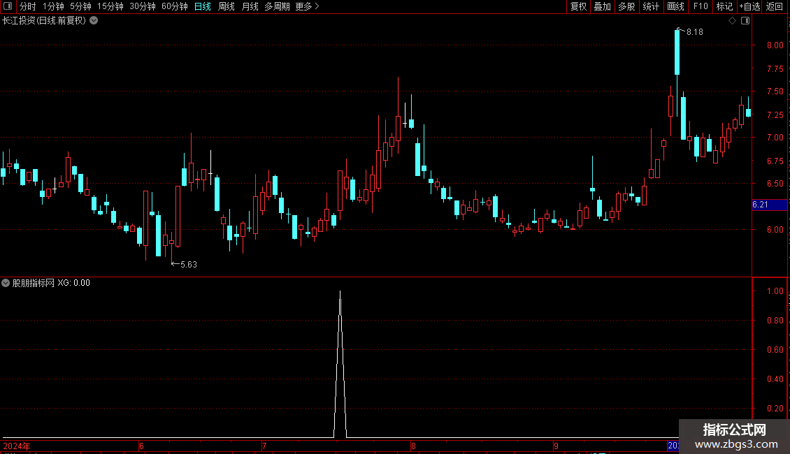 XG:机构控盘度>3 AND 总成交金额 > 5 AND crOSS(启动强度, 机构强度) AND 机构强度 < 2.1 AND C > O;
