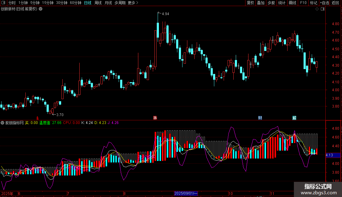 温度值:(C-LLV(C,21))/(HHV(C,21)-LLV(C,21))*100,COLORGREEN,NODRAW;