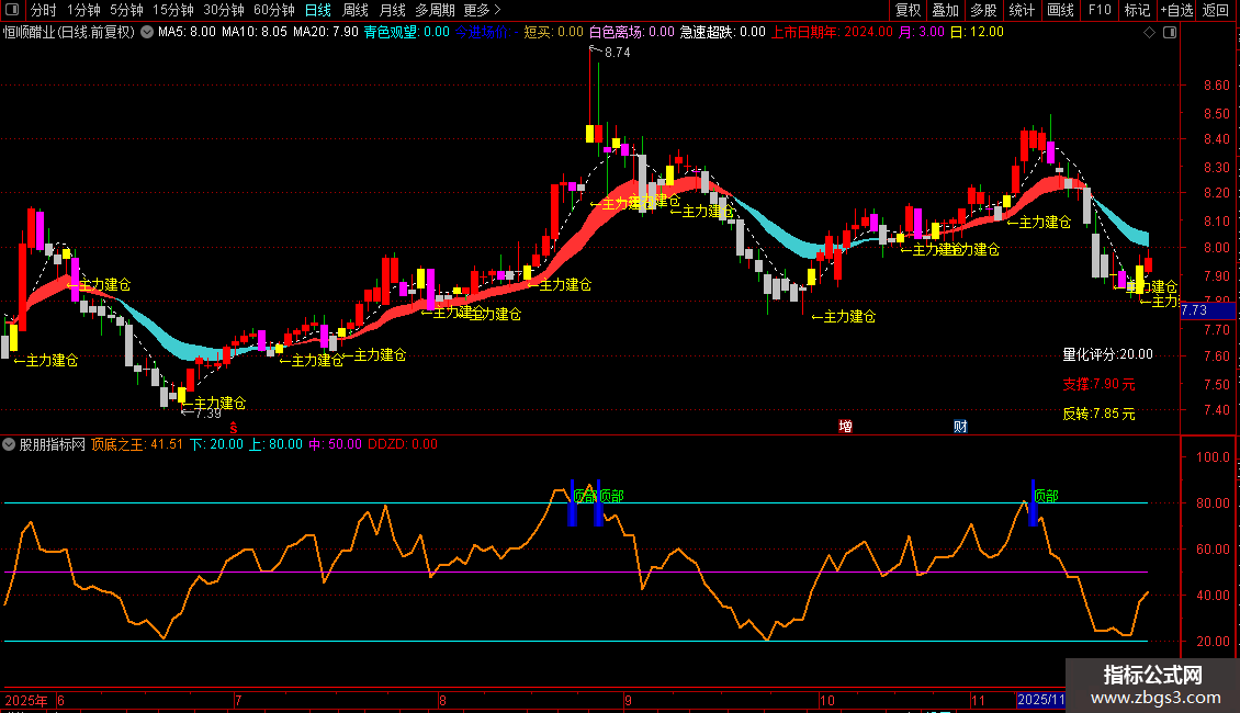2.主图主力建仓信号与副图底部信号共振是确定性见底信号,见底后主图出现主力建仓信号为加仓买点。