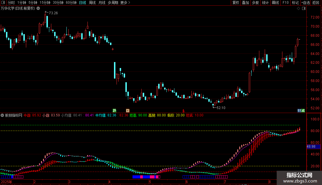 该指标构建了中期与短期两套轨道系统,通过颜色变化直观显示动量方向。当价格处于历史区间两端时给出明确警示,结合均线变化捕捉趋势转折点,实现多维度波段机会识别。