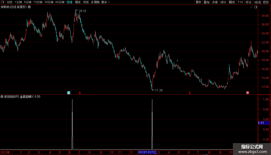 XG2:=(HIGH-MAX(CLOSE,OPEN))/(MIN(CLOSE,OPEN)-LOW)<=0.03;