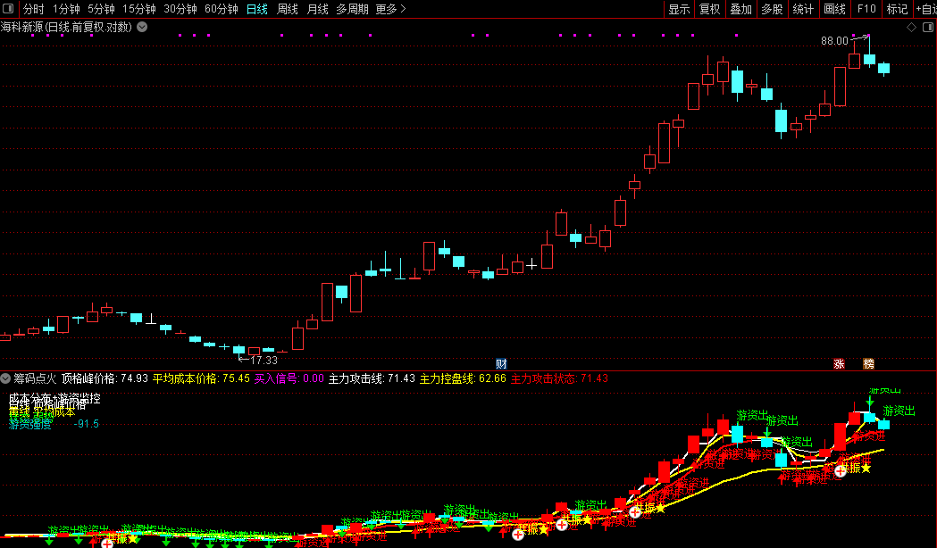 这是一个非常完整的三合一成本分布系统与游资监控模型,结合了成本分布、主力攻击系统和游资资金流向分析。