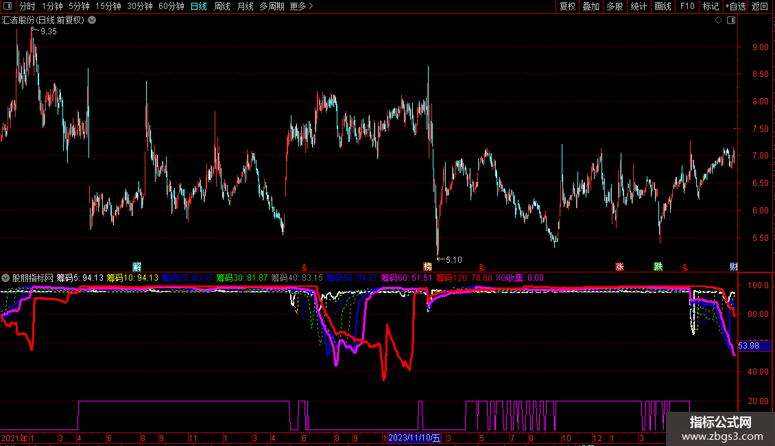 XG收集:(筹码5>95 AND 筹码10>95 AND 筹码50>95 AND 筹码60>95 AND 筹码120>96)*20;