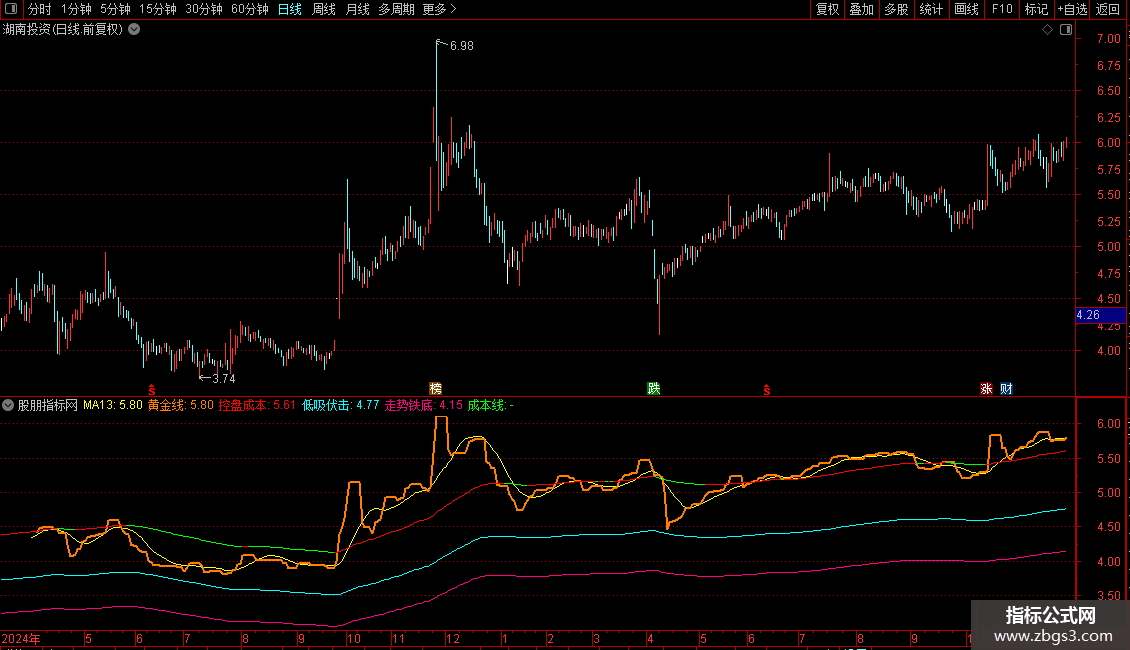 成本线:IF(控盘成本<REF(控盘成本,1),控盘成本,DRAWNULL),LINETHICK1,COLORGREEN;