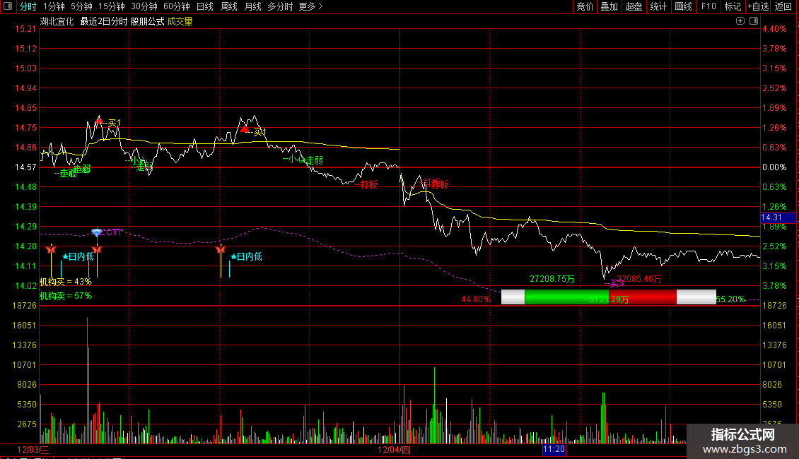 分时均价线:=SUM(C*V,240)/SUM(V,240),DOTLINE,COLORFFFFFF,LINETHICK1;
