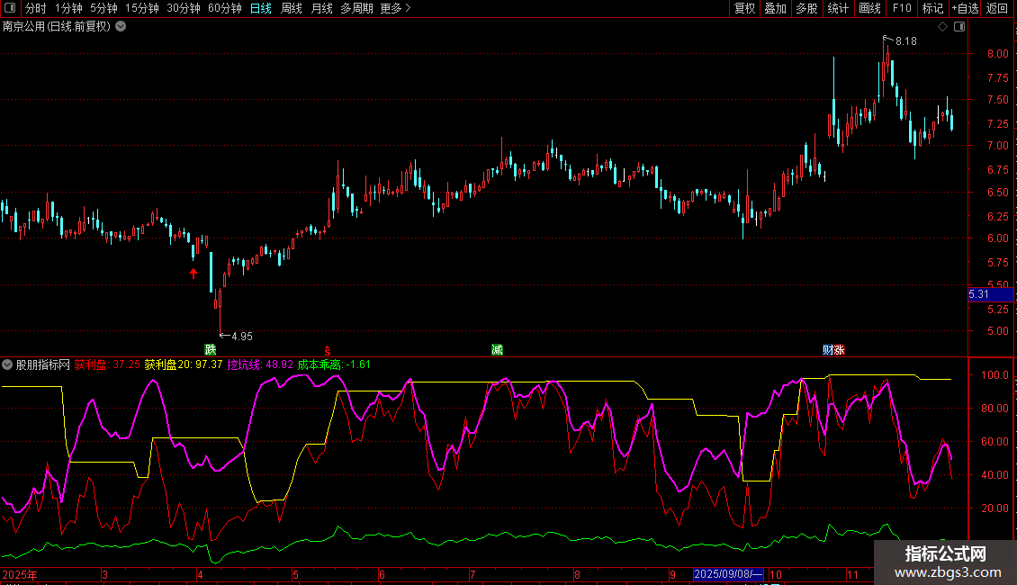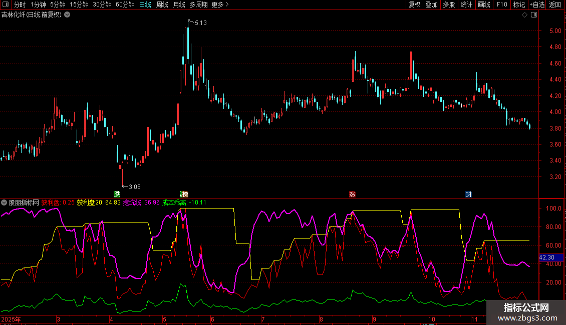挖坑线:EMA((100+获利盘-获利盘20),3),COLORMAGENTA,LINETHICK2;