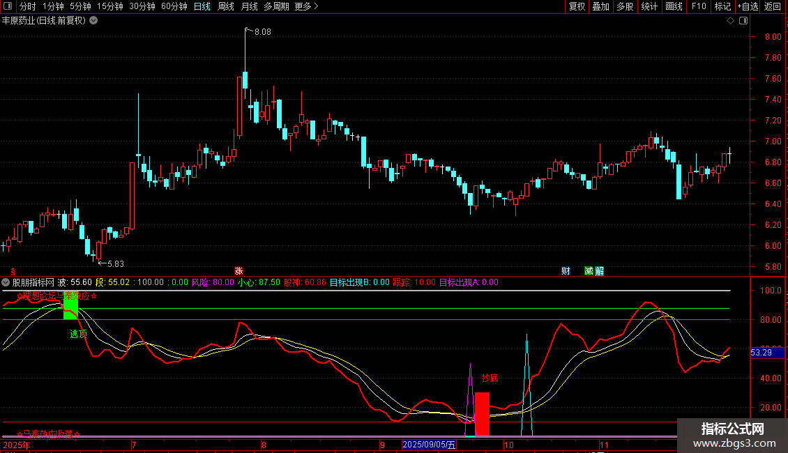 说明:股神亮剑为前人创作网上渠道收集,马泰效应实验室收集数万指标库中为数不多精品之一。