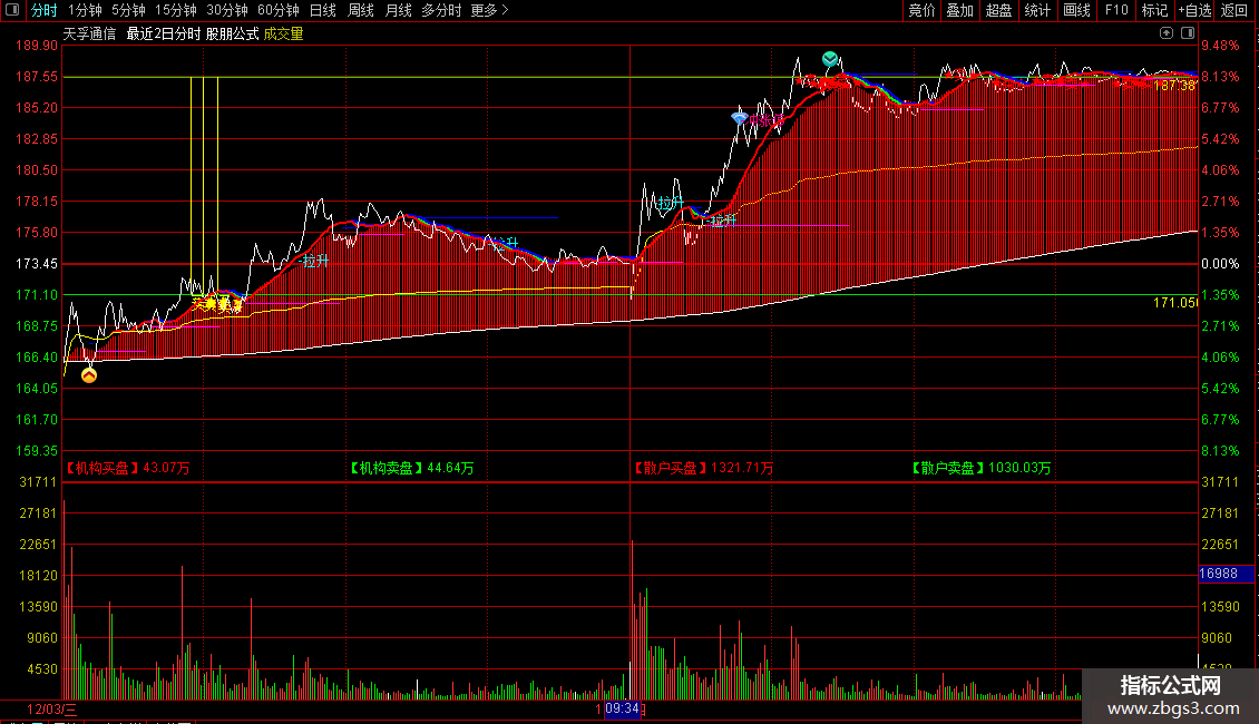 今天分享的分时主图指标名为分时神器,该指标不含未来函数。市场中没有绝对确定的事。即使股票符合大涨成妖模型,也并非必然大涨,只是概率较高。用指标筛选出此类股票后,仍需深入分析其上涨逻辑,确认逻辑合理才考虑介入。资金有限而机会无限,每次投资决策都关乎盈亏,务必谨慎。同时应注意分仓操作,永远留有回旋余地。若走势不及预期,可通过高抛低吸降低成本,避免深度套牢或加速解套。务必做好最坏准备,若亏损较小建议及时止损。被套后解套的时间成本很高,若遭遇突发利空或大盘风险,后果可能更为严重。