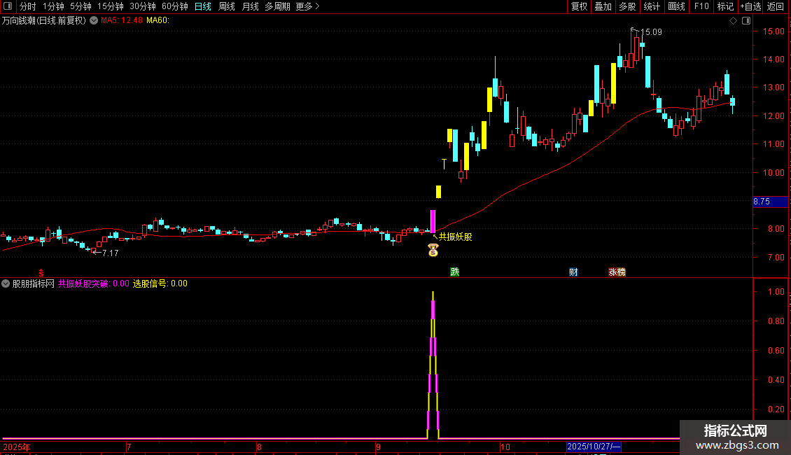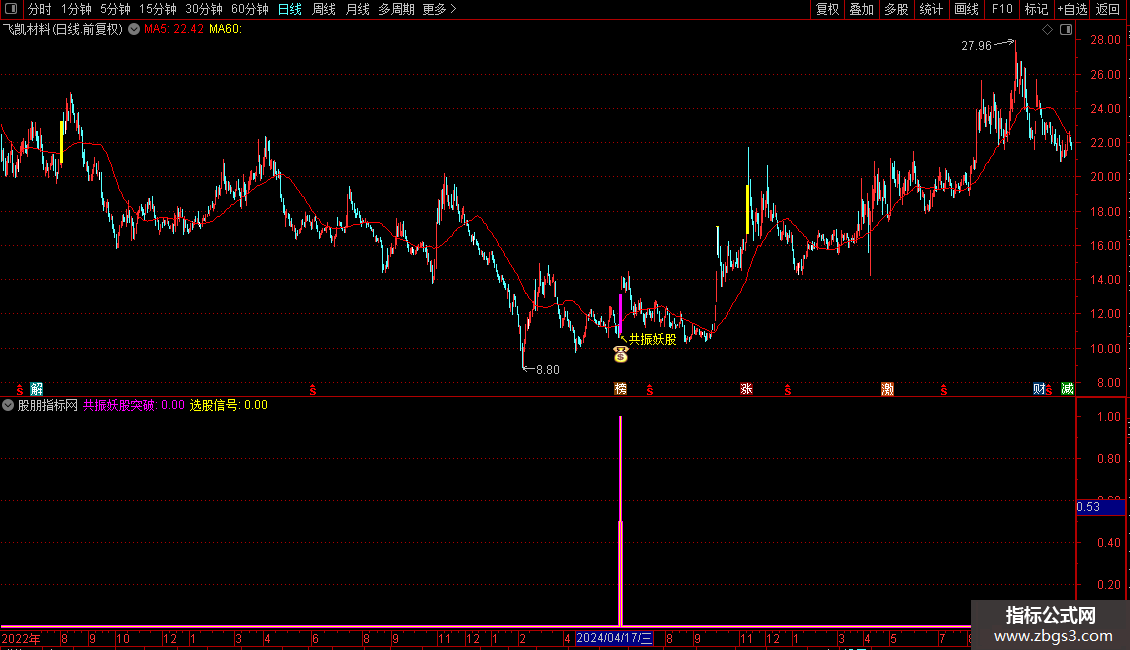 输出共振妖股突破:共振条件,画洋红色,线宽为3
