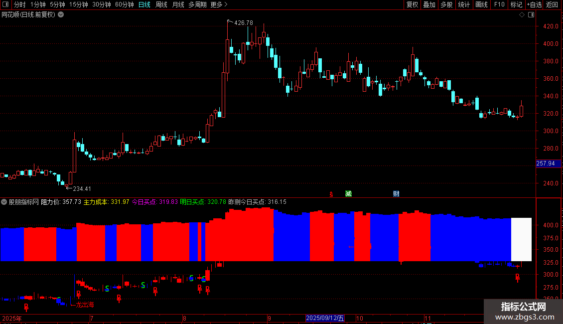 DRAWTEXT(YY1 AND YY5 AND YY3,LOW-0.2,'←龙出海'),COLORRED;