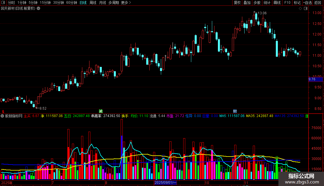 AA赋值:成交量(手)/((最高价-最低价)*2-收盘价-开盘价的绝对值)