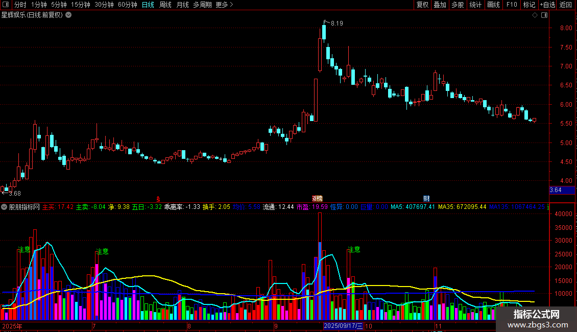 输出怪异:收盘价=收盘价 AND 换手>=25,COLORFF6600