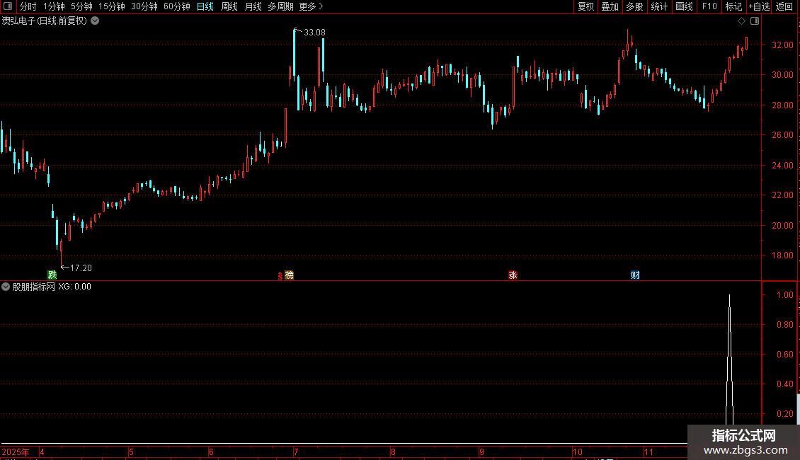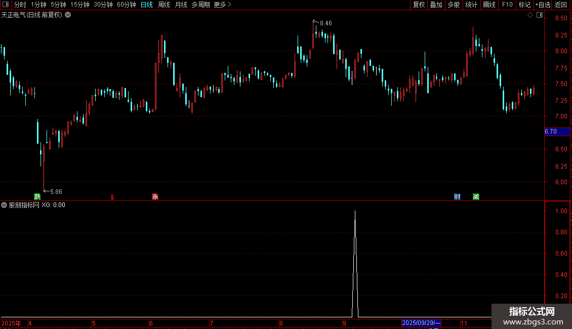 指标说明:入选的股票都是经过一定幅度下跌的,短线风格,有异动的时候关注跟进,设置涨幅大于3个百分点发现,当天有一定追高风险,考虑股价处于阶段底部,在没有系统风险的情况下相对失败率较低。副图即可作为预警公式,复制源码新建预警公式即可,预警公式可以结合自己的经验加入限制条件,如:换手率,流通盘大小......指标不是万能的,请结合其他指标进行综合判断。