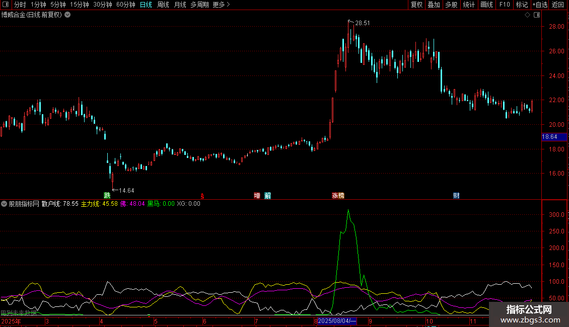 散户线:100*(HHV(HIGH,60)-CLOSE)/(HHV(HIGH,60)-LLV(LOW,60));