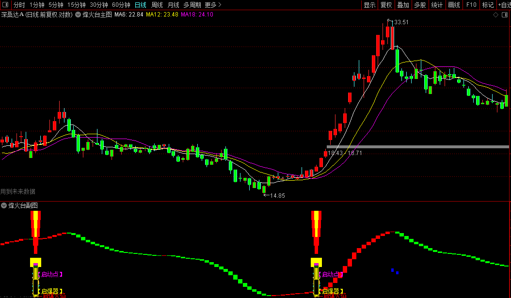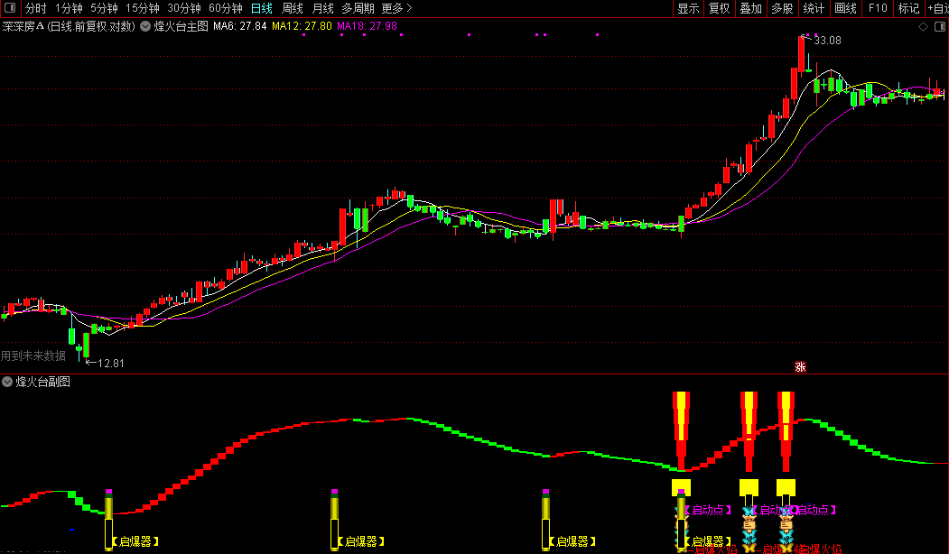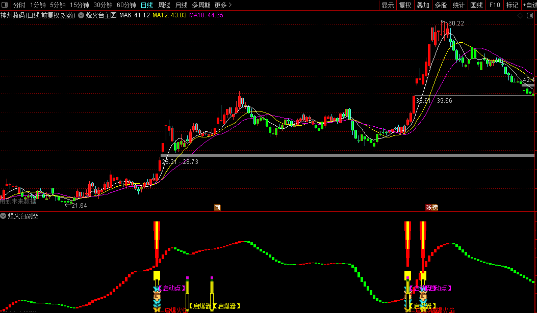 本指标包括1主1副图3选股 烽火台指标是专为通达信设计的分析工具,其核心功能在于识别价格启动信号和趋势转折点。指标通过计算股价与均线的关系、量能变化及动态涨跌幅,综合判断市场强弱。当出现量价齐升且股价突破多条均线时,会以醒目的彩色柱状和文字标注“启动点”或“启爆器”,直观提示潜在进场时机。同时,指标通过火焰状图标和色带变化,动态展示趋势的延续或转折,帮助投资者把握行情启动初期的关键节点。适用于短线交易者捕捉强势起涨点,辅助决策买卖时机