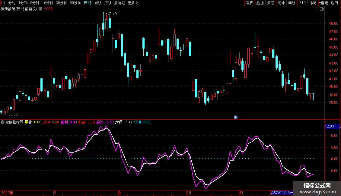 趋势:(CLOSE-MA(CLOSE,21))/MA(CLOSE,21)*100,COLORMAGENTA,LINETHICK2;