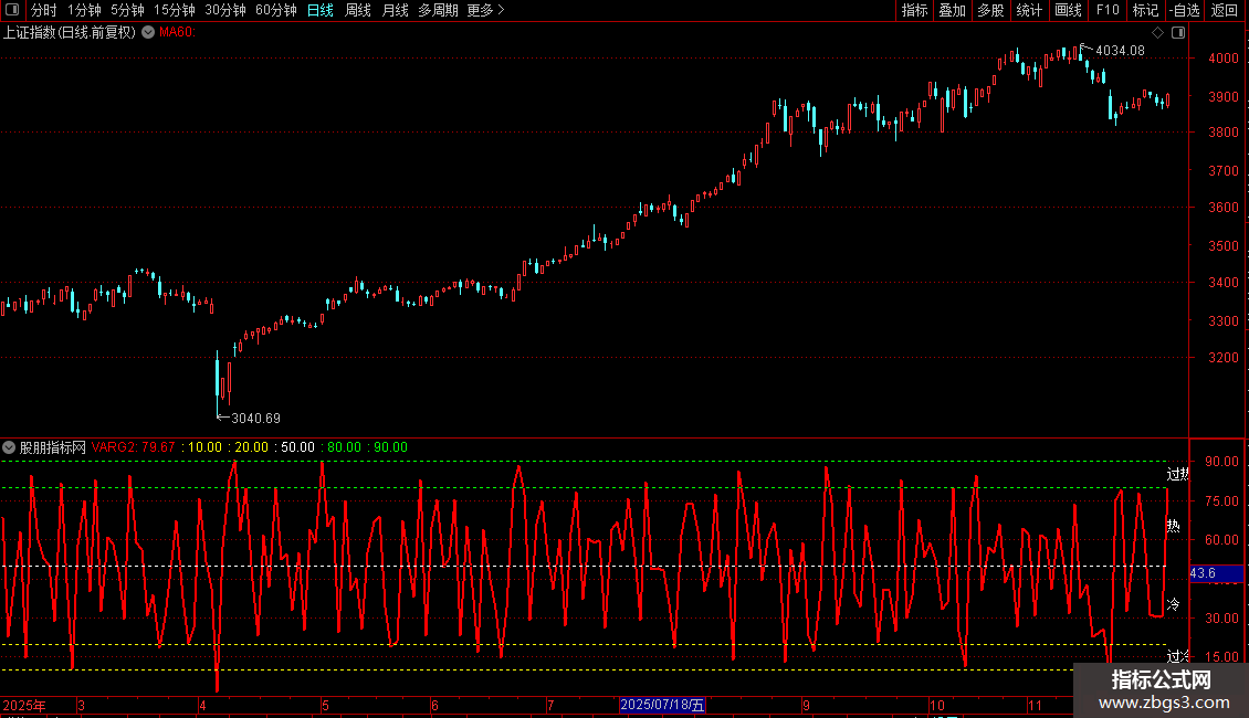 DRAWTEXT(CURRBARSCOUNT=1,85,'过热'),COLORWHITE;