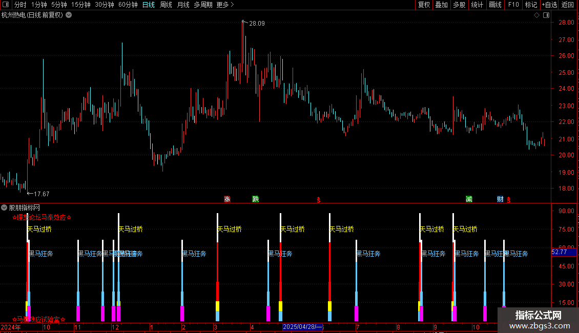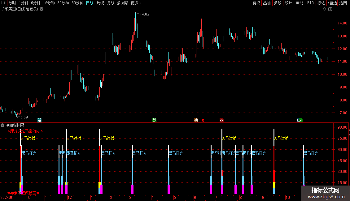 STICKLINE(小黑马>0,0,小黑马*1.1,1,0),COLORWHITE;
