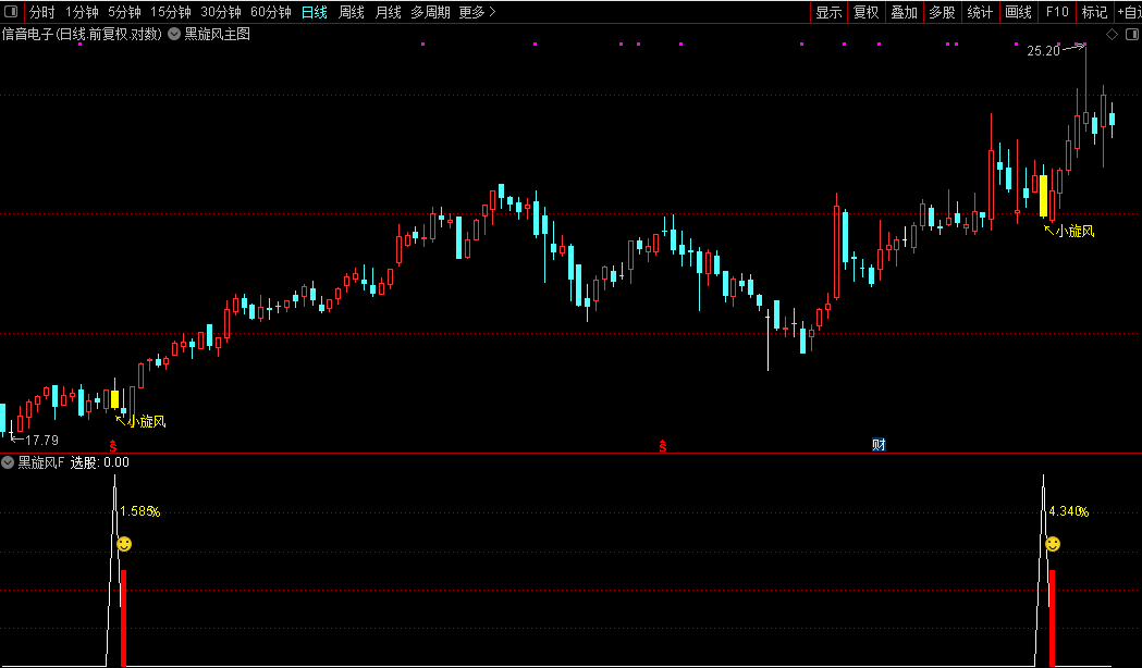 该信号逻辑着眼于趋势跟踪,将此类缩量或温和放量的阴线视为回调末端的潜在低吸窗口,适合投资者关注股价在消化压力后重拾升势的时机。回测显示,该策略在最近一年的历史数据中胜率约为90%,显示出较高的择时有效性。但须注意,信号的可靠性高度依赖整体趋势方向,在明确的上升通道或中期均线多头排列背景下应用效果最佳,可有效过滤下跌趋势中的类似反弹陷阱。实际操作中建议结合量能变化、关键支撑位及市场整体环境进行综合判断,并严格执行止损纪律以控制风险。通过主副图指标的多维度确认,该体系为趋势交易者提供了一个结构清晰、信号数量适中的观察与决策工具。