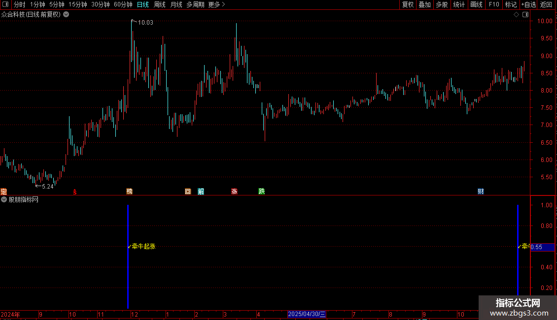 趋势判断:通过多周期均线(如5日、10日、20日、60日、125日、250日均线)的排列关系,判断长期上升趋势。