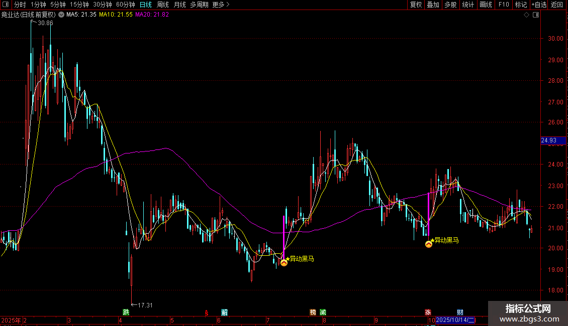 DRAWTEXT(异动黑马,LOW,' ★异动黑马'),COLOR00FFFF;