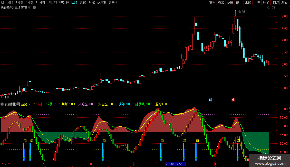转弱:IF(趋势<50,趋势,DRAWNULL),COLORGREEN;