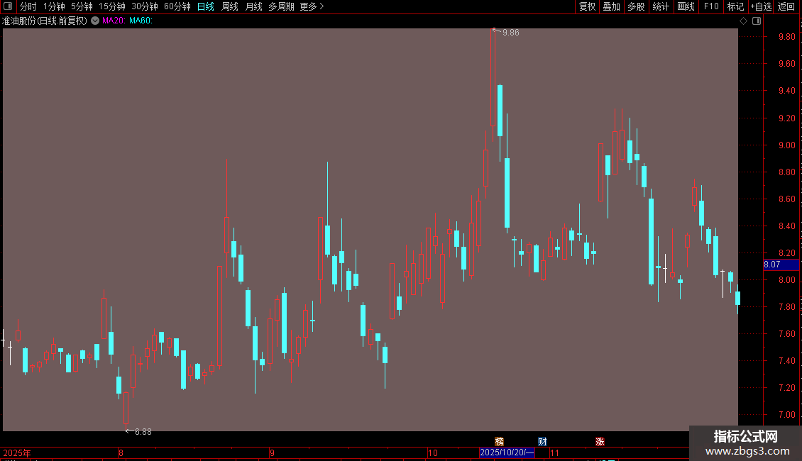 T7{射击之星}:=CONST(IF((MIN(OPEN,CLOSE)=LOW AND HIGH-LOW >
