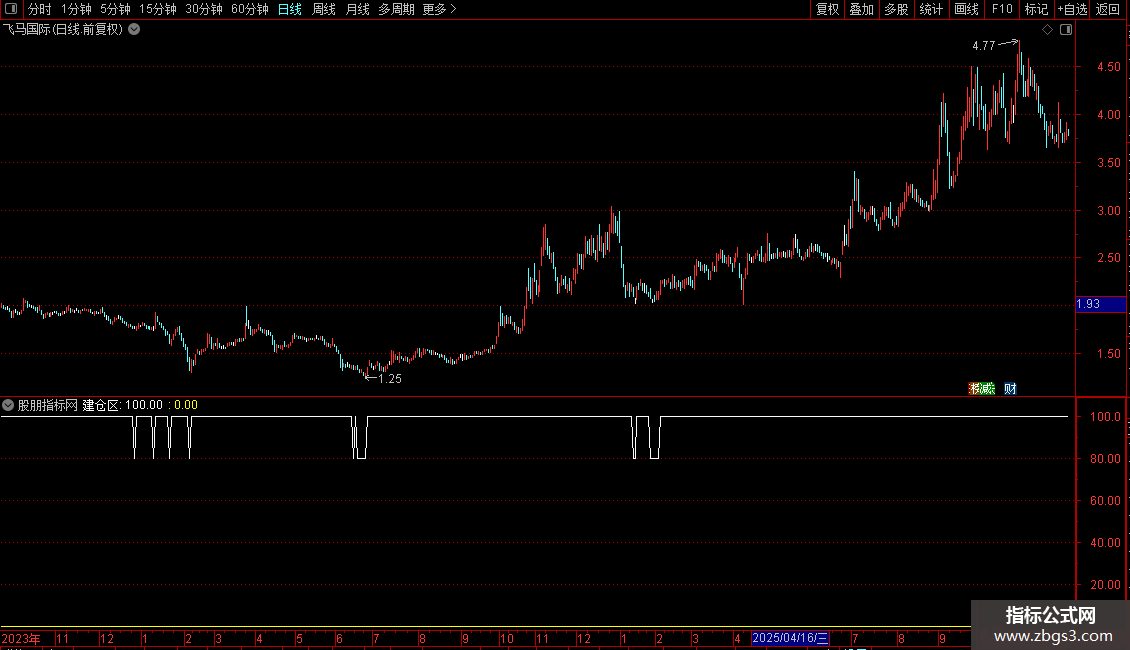 输出 建仓区: 如果(VARO7<10),返回80,否则返回100 ,线宽为1