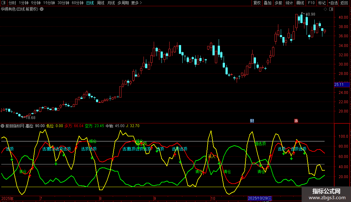 J线高位拐头向下:=J>50 AND J<REF(J,1) AND REF(J,1)>REF(J,2); {J线在高位开始向下转折}