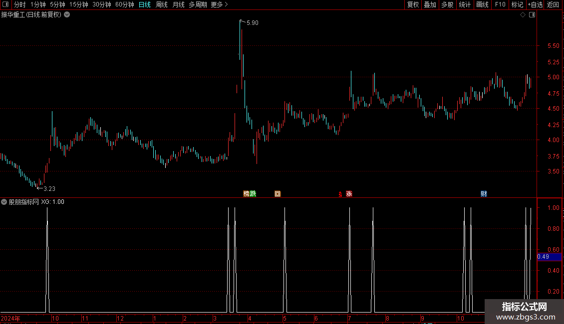 强势:=STICKLINE(趋势启动>5 AND DIFF>DEA AND C>=EMA(C,5) AND A1-B1>0,0,-做空,2,0 );