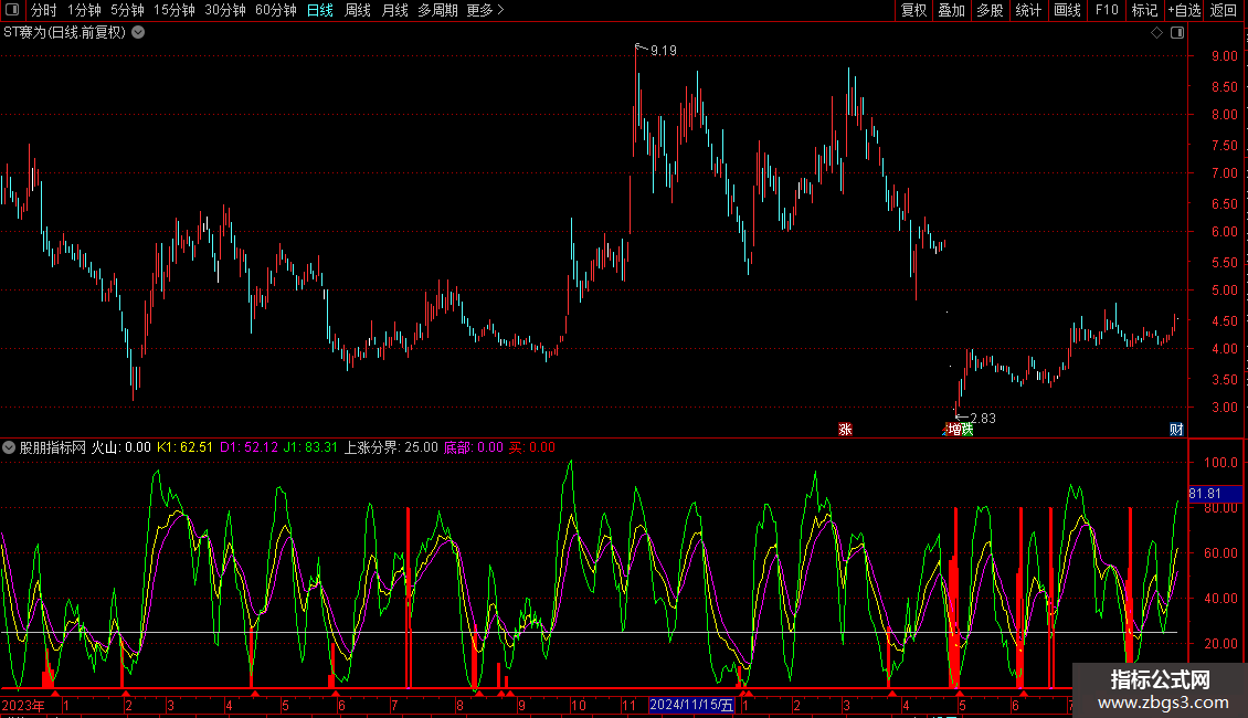 STICKLINE(J<=0,0,火山,2,0),COLORRED;