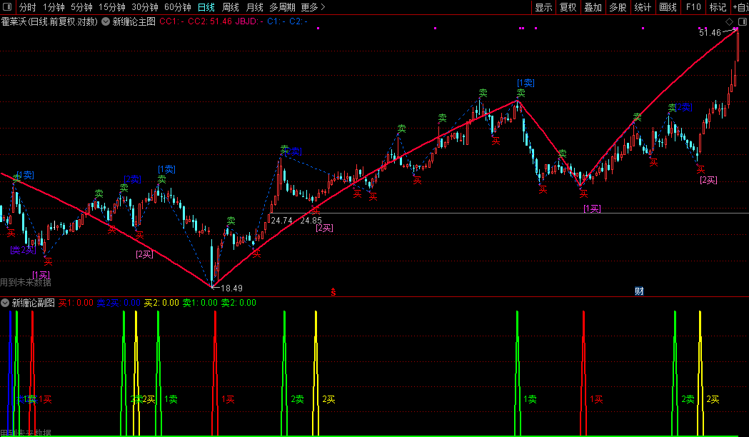 工具可在图表上自动绘制波段高低点连线及潜在中枢整理区间,直观呈现股价的支撑、压力与运行节奏。用户可直接加载至主图,依据出现的信号与图形结构,辅助进行波段交易决策。